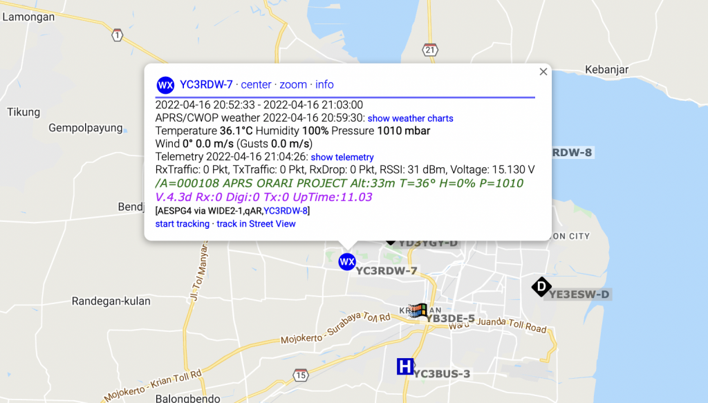 APRS dalam menampilkan telemetri Weather Station, dapat memberikan infomasi untuk prediksi cuaca pada lokal/area dimana WX Station berada, sehingga masyarakat umum bisa mengetahui informasi WX secara langsung dan apabila diperlukan bisa dilakukan antisipasi terhadap perubahan cuaca yang drastis.