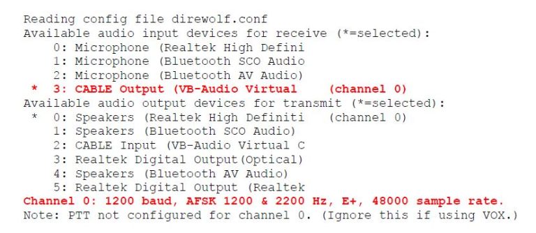 2 line diatas adalah identifikasi USB port dari soundcard CM108, dibawah adalah capture dari scroll text yang muncul apabila execute direwolf