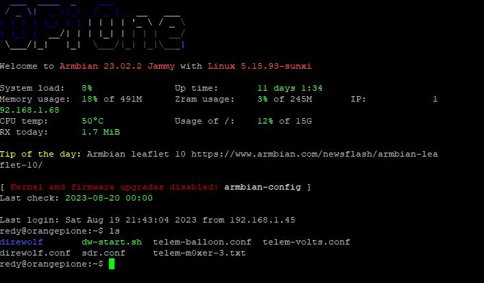 berikut adalah tampilan dari list folder setelah kita melakukan proses installasi dari direwolf pada ArmbianOS