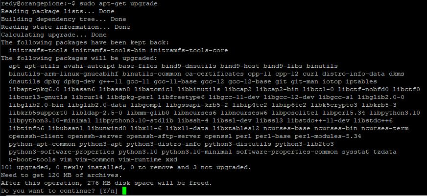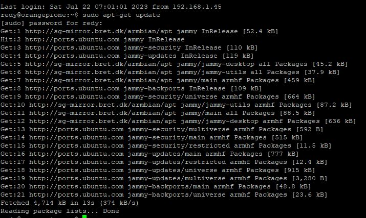 lakukan proses update untuk retrieve update link repository dengan command sudo apt-get update , dan dilanjutkan dengan sudo apt-get upgrade untuk mendapatkan versi terbaru untuk setiap packages files-nya.